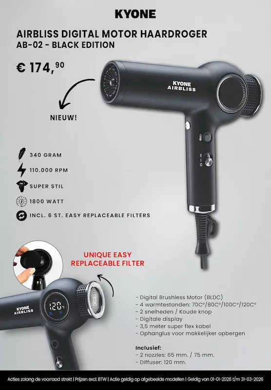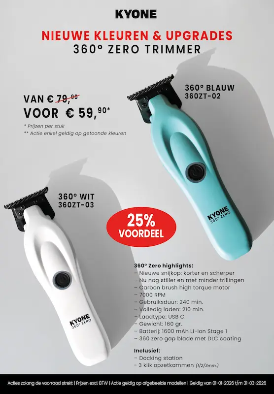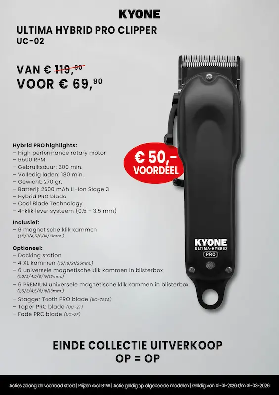 Kyone biedt een zeer groot assortiment van kappersbenodigdheden. Hun producten zijn ontworpen, geproduceerd en uitsluitend bedoeld voor de professionele kappersmarkt. Kyone verkoopt niet rechtstreeks aan kappers en salons. Er wordt enkel geleverd via exclusieve verdelers zoals Mind-Upgrade